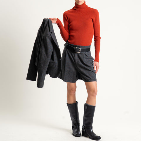 Tensione in-Bermuda check con pieghe - grigio/coccio