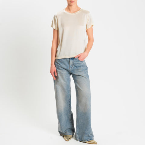 Vicolo-Blusa satin elasticizzata mezza manica - burro