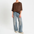 Vicolo-Blusa satin elasticizzata manica 3/4 - cacao