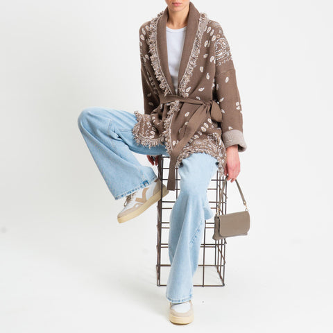 Tensione in-Cardigan rombi con frange - brown/beige/senape