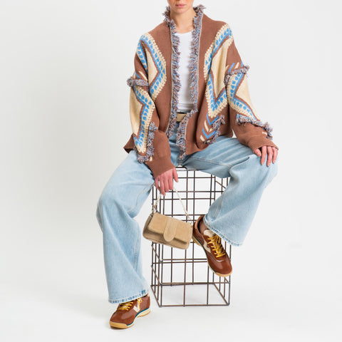 Tensione in-Cardigan rombi con frange - beige/cuoio/azzurro