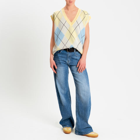 Motel-Gilet arglye 100% cotone - giallo/panna/azzurro
