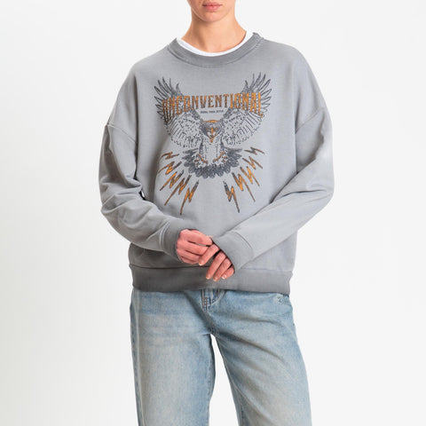 Haveone-Felpa stampa aquila stone washed - grigio
