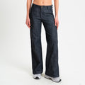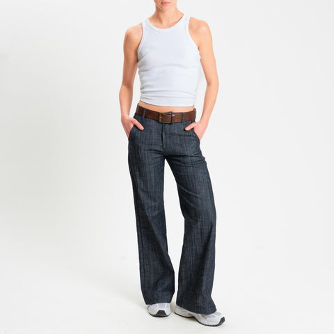 Zeroassoluto-Pantalone LILLY palazzo chambray elasticizzato - denim nero