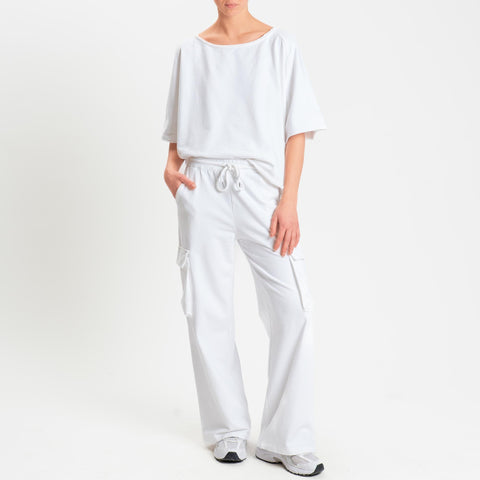 Zeroassoluto-Pantalone felpa light cargo - bianco