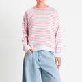 Motel-Maglia girocollo a righe tessuto modal - bianco/rosa