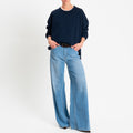 Zeroassoluto-Felpa scatola manica lunga con spacchi laterali stone wash high quality - blu