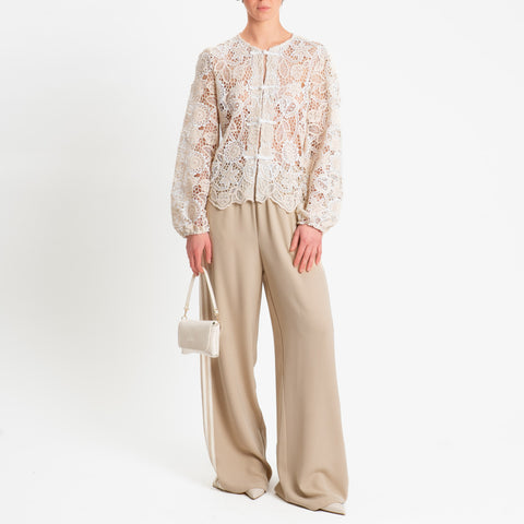 Tensione in-Giacca pizzo macramè - burro