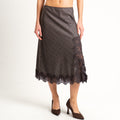 Tensione in- Gonna principe di galles con pizzo spacco laterale - moro