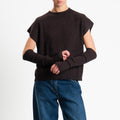 Haveone-Maglia smanicata con manicotti misto alpaca - moro
