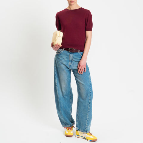 Tensione in-Maglia mezza manica 100% LANA MERINO - Bordeaux