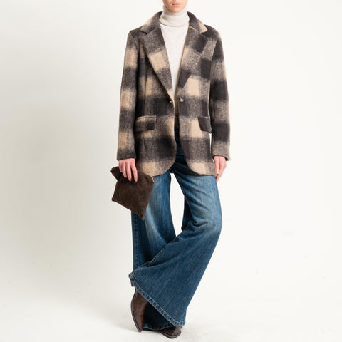 Vicolo-Giacca kimono check misto lana - burro/grigio/nero