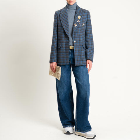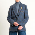 Vicolo-Giacca misto lana un bottone con spille - check antracite/azzurro