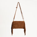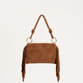 W by Whitemood- Borsa a spalla scamosciata con frange - cuoio