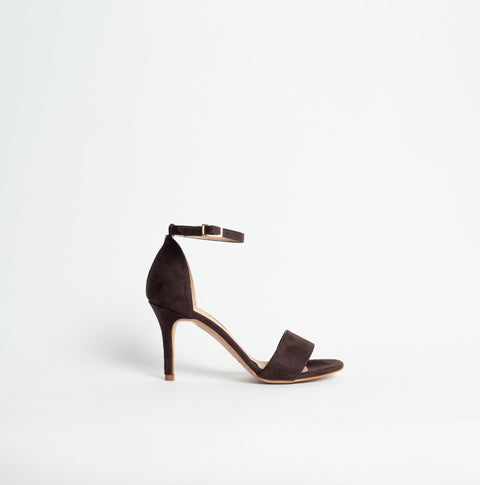 Ovyè- Sandalo con tacco in camoscio - moro