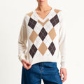 Tensione in-Maglia rombi argyle misto cashmere scollo v - burro/moro/cuoio