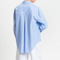 Tensione in-Camicia over con taschino in cotone - righe celeste/bianco