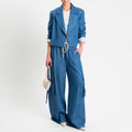 Tensione in-Giacca crop doppiopetto chambray - light denim