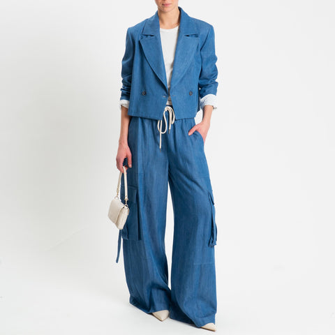Tensione in-Giacca crop doppiopetto chambray art. TI/26B3747