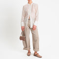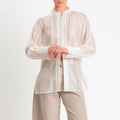 Dixie-Camicia mandarin in mussola spacchi laterali - beige