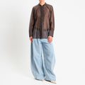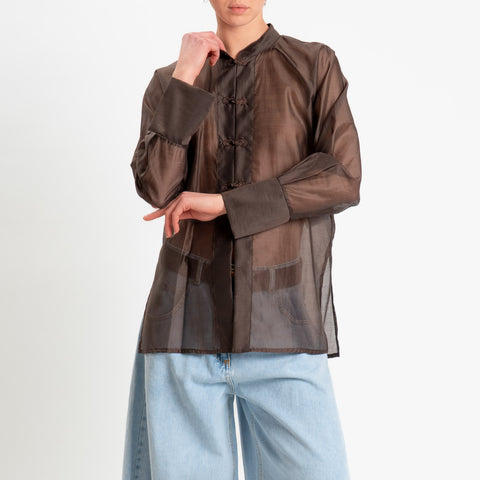 Dixie-Camicia mandarin in mussola spacchi laterali - moro