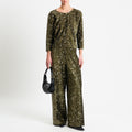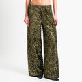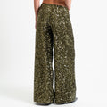 Tensione in-Pantalone wide leg con paillettes elastico in vita - militare