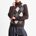 Tensione in-Maglia collo alto rombi argyle misto cashmere - marrone/beige/antracite