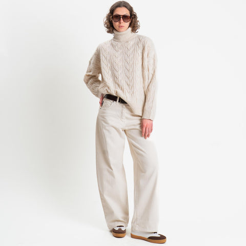 Tensione in-Maglia trecce collo alto misto alpaca - off white