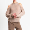Tensione in-Maglia coste inglese cut out mohair con micro paillettes - beige