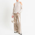 Tensione in-Maglia coste inglese cut out mohair con micro paillettes - crema