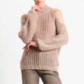 Tensione in-Maglia coste inglese cut out mohair con micro paillettes - beige