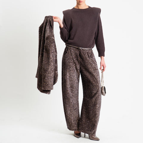 Motel-Pantalone barrel paillettes velluto ciniglia - fango