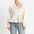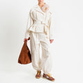 Tensione in-Trench corto con cintura con spilla removibile - panna