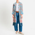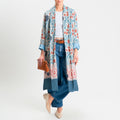 Wu'side-Kimono lungo fantasia floreale - azzurro/panna/rosa