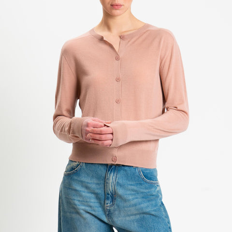 Tensione in-Cardigan rebecchina 100% LANA MERINO - rosa