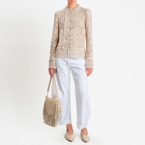 Motel-Giacca camicia pizzo macramè - sabbia