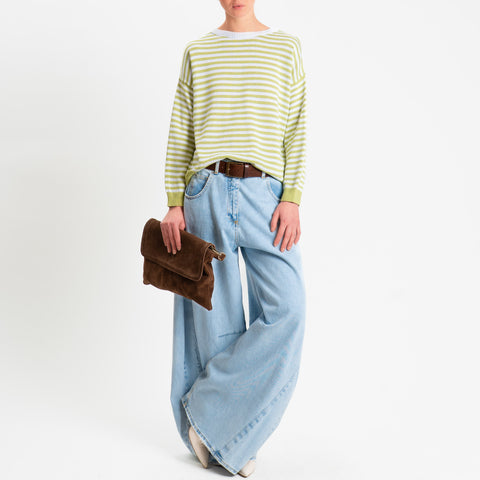 Motel-Maglia girocollo a righe tessuto modal - pistacchio/bianco