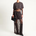 Dixie-T-shirt crop doppio tessuto con pizzo - moro