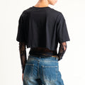 Dixie-T-shirt crop doppio tessuto con pizzo - nero