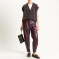 Dixie-Pantalone similpelle barrel fit con pinces - Bordeaux