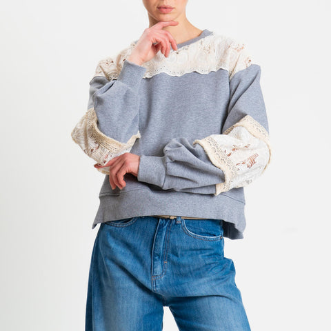 Tensione in-Felpa ricamata - grigio/burro