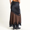 Vicolo- Gonna in satin con pizzo spacco laterale - nero/moro