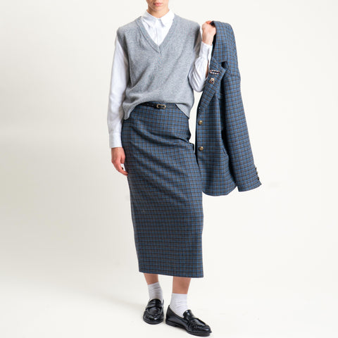 Tensione in- Gonna a quadri spacco dietro - grigio/azzurro