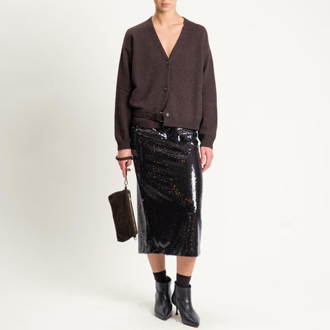 Tensione in-Gonna midi paillettes spacco dietro - moro