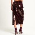 Tensione in-Gonna midi paillettes spacco dietro - vino