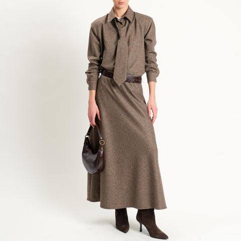 Tensione in-Gonna misto lana melange elastico in vita - tabacco