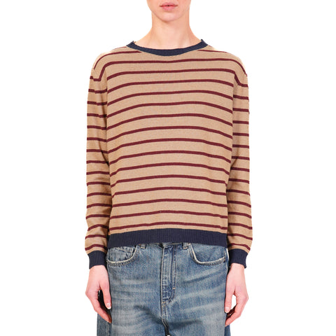 Tension in- Striped Cashmere Blend Sweater - Blue/Camel/Wine