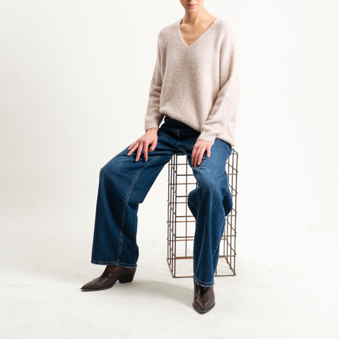 Zeroassoluto-Maglia scollo a v manica scesa BABY ALPACA SUPERFINE ELASTICIZZATA - beige