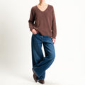 Zeroassoluto-Maglia scollo a v manica scesa BABY ALPACA SUPERFINE ELASTICIZZATA - moro