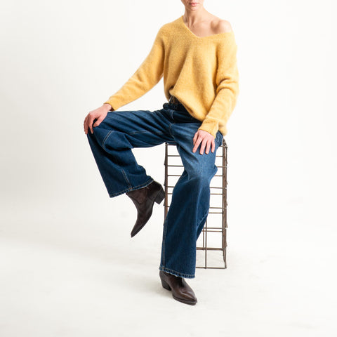 Zeroassoluto-Maglia scollo a v manica scesa BABY ALPACA SUPERFINE ELASTICIZZATA - ocra